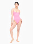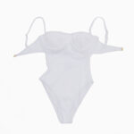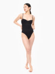 Claudia, costume intero sgambato, con top balconcino ferretto con bretelle regolabili, apertura al centro dietro in metallo color oro.
