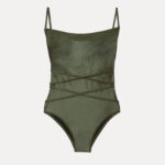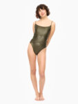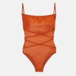 Judie è il Costume intero con scollo quadrato e lacci extra-lunghi regolabili da annodare alla vita. sgambatura media. Realizzato con tessuto bielastico extra shiny che garantisce vestibilità perfetta, seguendo e modellando il corpo. Tutto foderato.