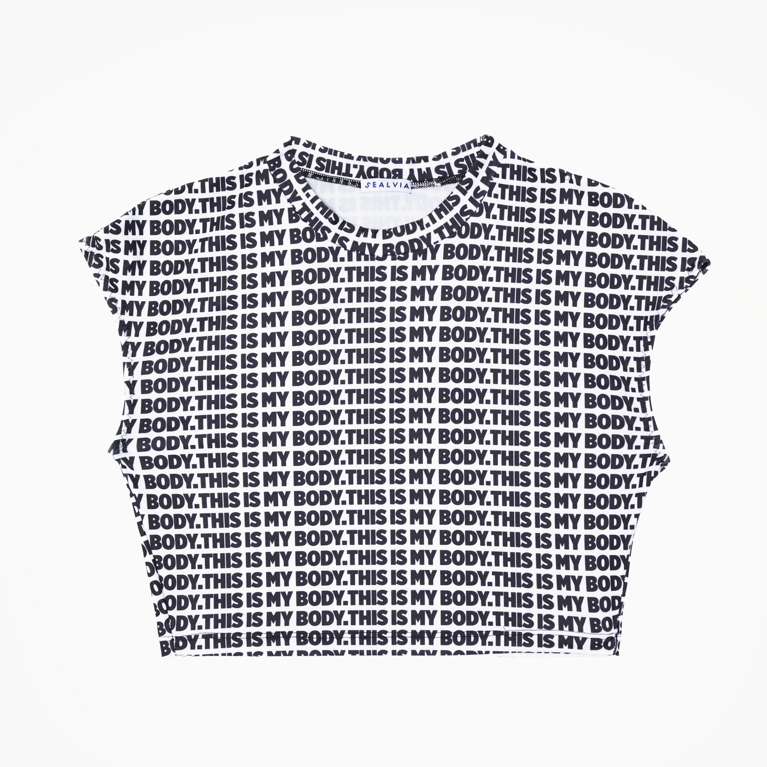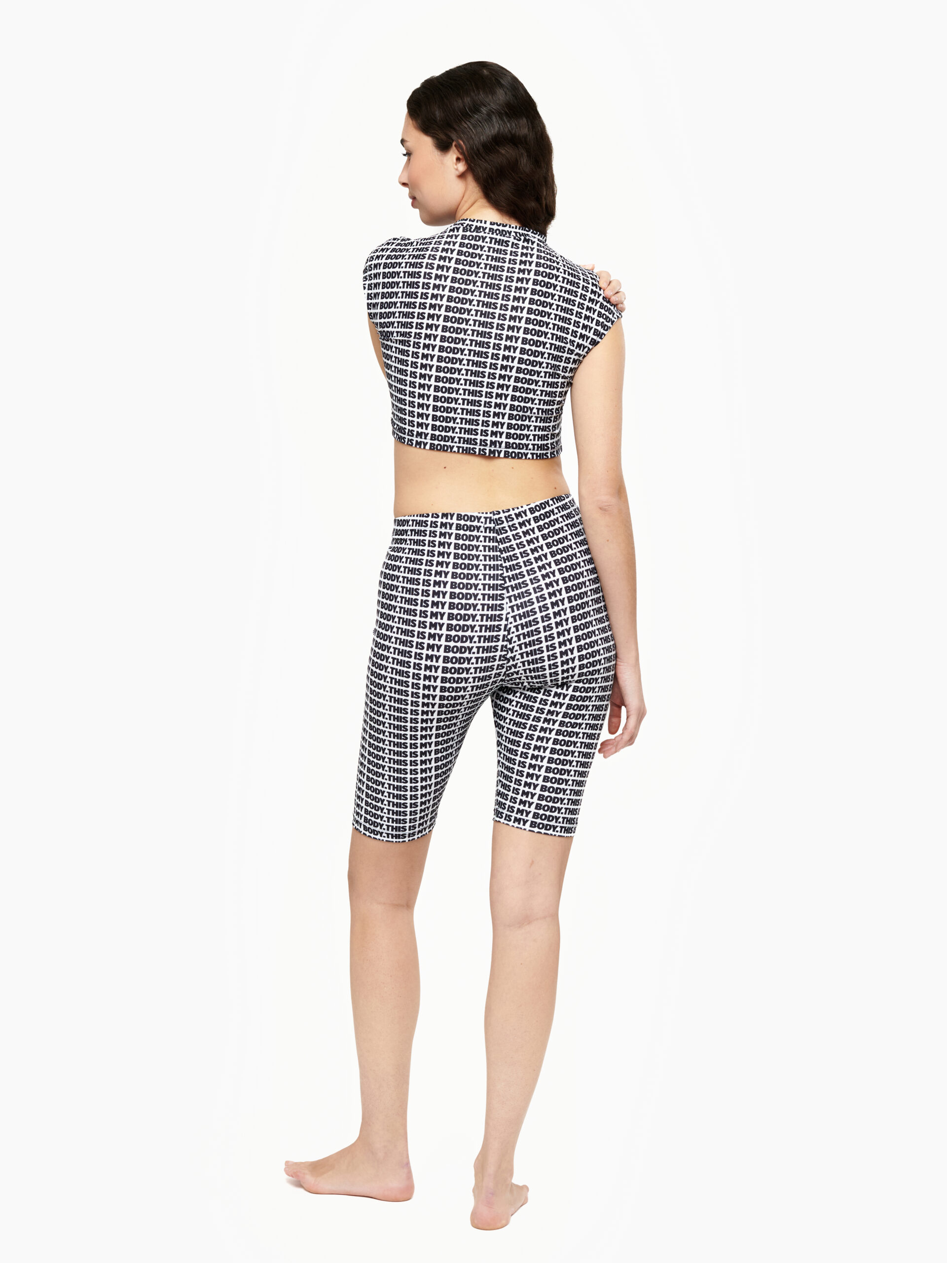 Realizzato in lycra ultraleggera, mano seta, Livia Top è morbido, modellante e leggero, permettendoti di muoverti con naturalezza e sentirti sicura di te stessa. La stampa “This Is My Body” celebra la tua unicità e la bellezza del corpo in ogni forma.