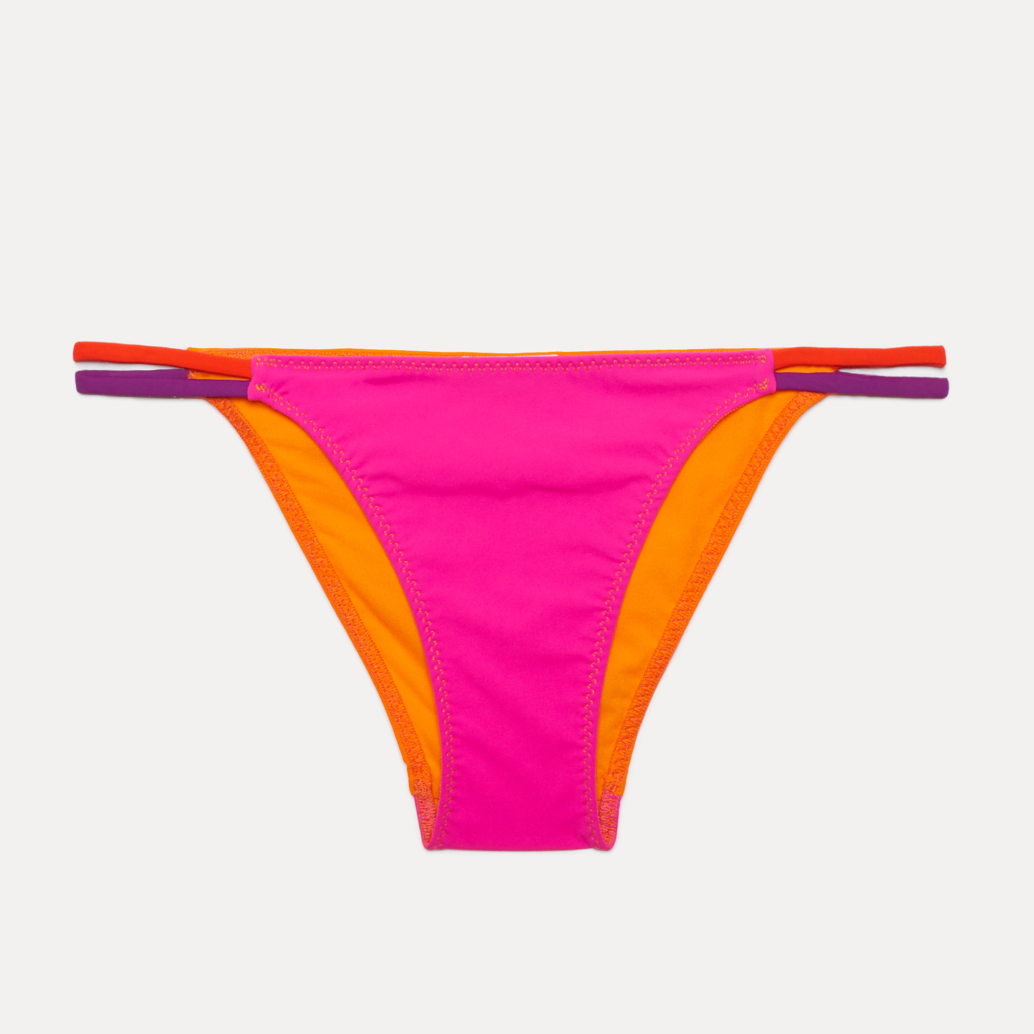 Tamara Bottom è lo slip a vita bassa con doppie string laterali fisse, color block 4 colori Tutto foderato. Impunture in contrasto.
